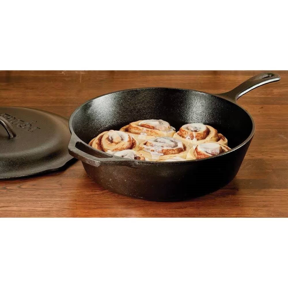 • 12-inch Round Cast Iron Deep Skillet with Lid Pre-Seasoned and Made in the USA