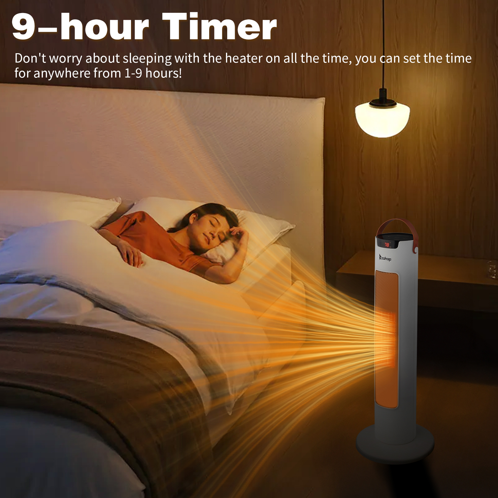 4. 9-Hour Timer: The convenient 9-hour timer allows you to pre-set your heating schedule according to your daily routine. Whether you want to wake up to a warm room or ensure a cozy atmosphere as you wind down for the night, this feature provides you with personalized comfort exactly when you need it.