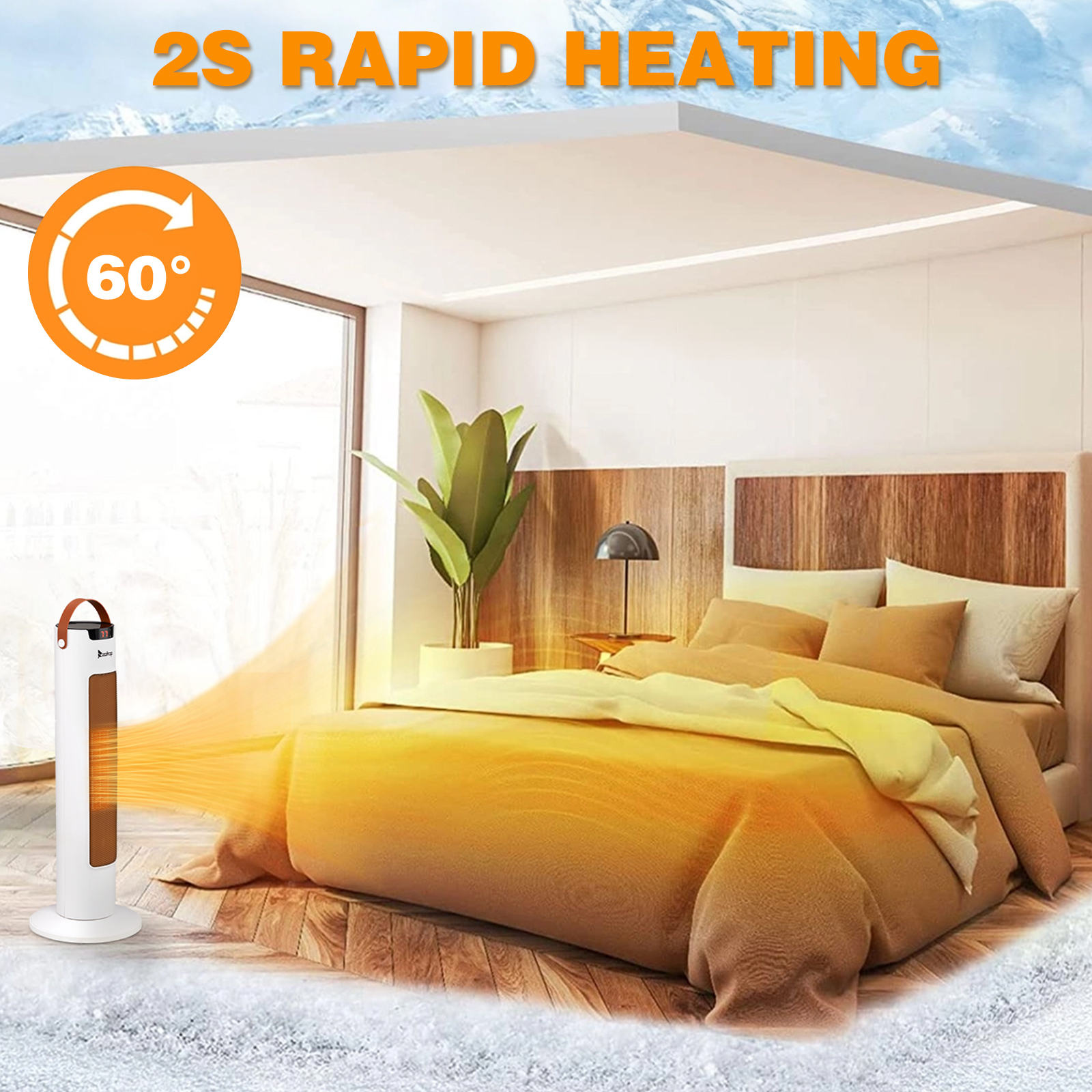 5. Slim and Portable Design: Featuring a sleek, contemporary design, this tower heater not only warms your space but also enhances your home décor. Its lightweight build and portable PU handle make it easy to move from room to room, delivering warmth wherever you need it—ideal for bedrooms, offices, living rooms, and more.