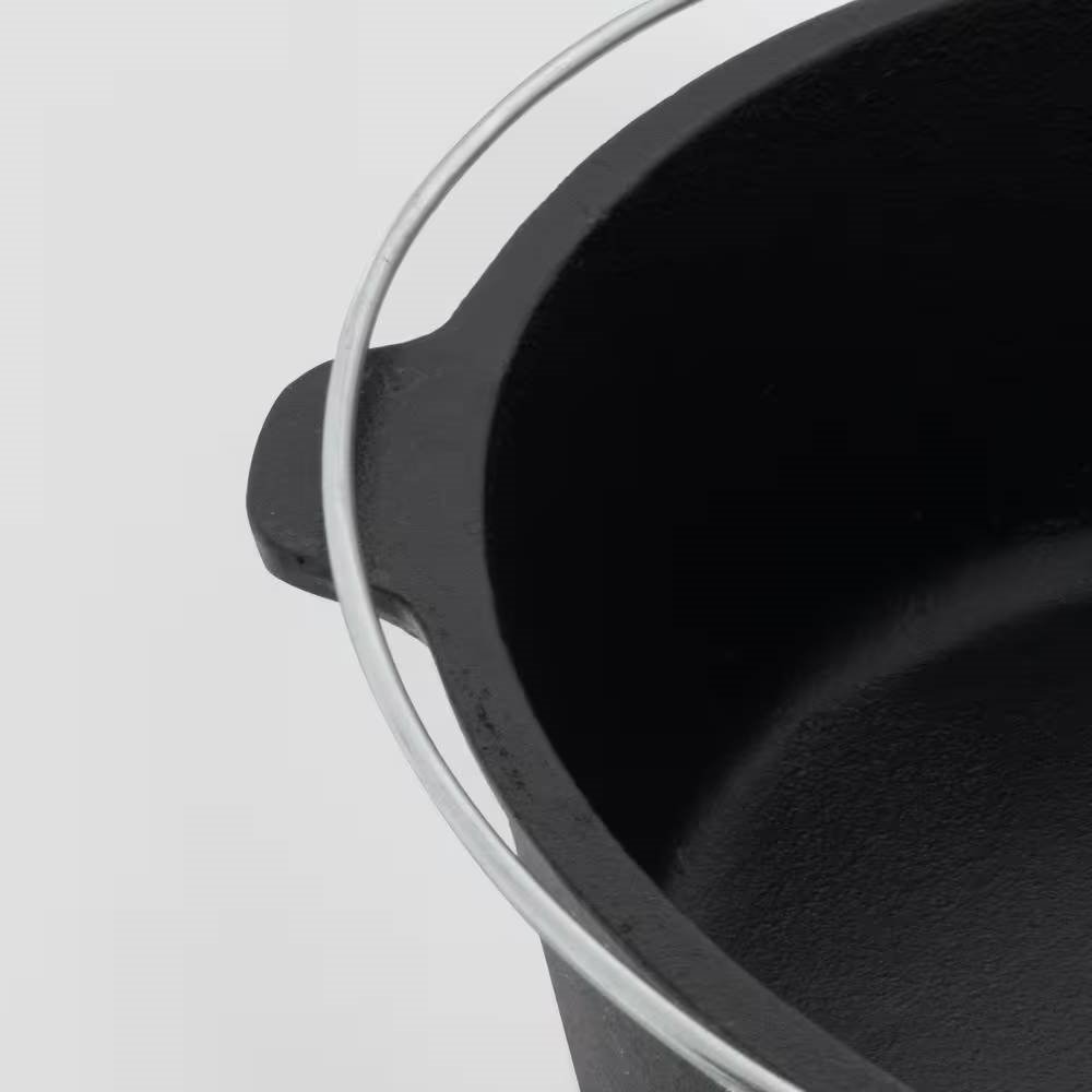 Take pleasure in cooking a campfire meal on your next outdoor excursion or craft a delicious dinner roast for the family with this 6-Quart Durable Cast Iron Dutch Oven with Lid and Metal Handle. Sturdy and durable, this 6-Quart Durable Cast Iron Dutch Oven with Lid and Metal Handle has been constructed to be reliable and long-lasting in and outside of your home. Lock in the flavors of your crafted creations with its well-fitted lid and create wonderful experiences that make this Dutch oven The perfect cooking companion. Easily hang from a tripod to control cooking heat and temperature or keep it stationary with the built-in leg base for added stability. Regularly season and re-oil to extend the life of your Dutch oven. Hand wash only to prevent rust.