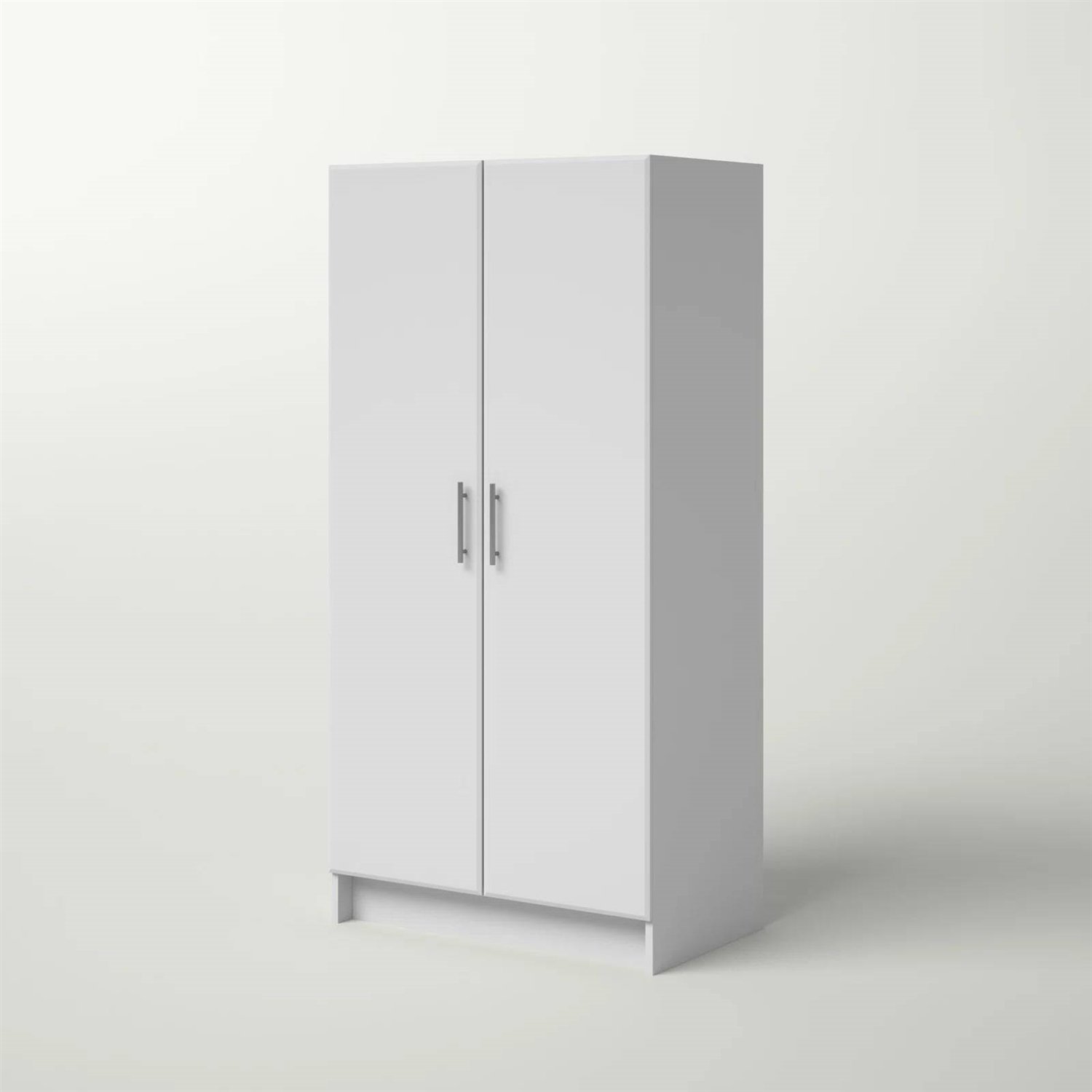 • Ample Storage Space: Description The Wardrobe Closet offers you a wall cabinet and clothes organizer all in one. Designed as a free-standing pantry, this white closet offers a significant internal storage capacity of 18.75" D x 30.25" W x 59" H.