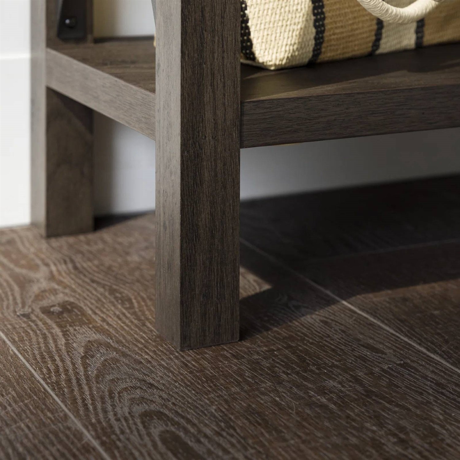 With this Industrial Farmhouse Entryway Table / Sofa Table in Brown Grey Wood Finish, you’ll have a stylish entryway in no time. The urban industrial and charming, farmhouse style create a warm and inviting feel to your home, which you’ll enjoy having. With metal accents on the corners and x-shaped sides for an intriguing design. A lower shelving made from durable laminate provides a surface for your shoes when you get home or to decorate.