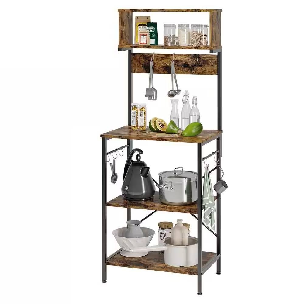 This Industrial Modern Kitchen Metal Wood Shelf Bakers Rack Microwave Stand with 3 power outlets, 1 air switch button and 6.5ft cable has UL certification. Safe for your coffee makers, toaster or bread maker. The kitchen baker's rack can be as a coffee bar, microwave oven stand, bakers racks, plant stand, printer stand, bookshelf, storage console shelf,etc. Made of CARB certified P2 particle board, Bestier wood bakers racks for kitchens with X-bars design has great stability and durability. 23.62" W x 60.16" H x 16.54"D. The microwave rack has 5 shelves to keep your vegetables, cooking and eating utensils, plates in plain sight and easy to use. With a user-friendly manual and tabbed part, the standing kitchen shelf can be easy to install.