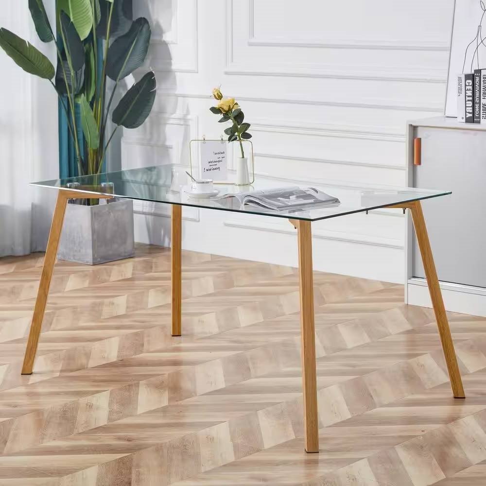 Modern 47-inch x 29-inch Glass Top Dining Table with Wood-Look Metal Legs