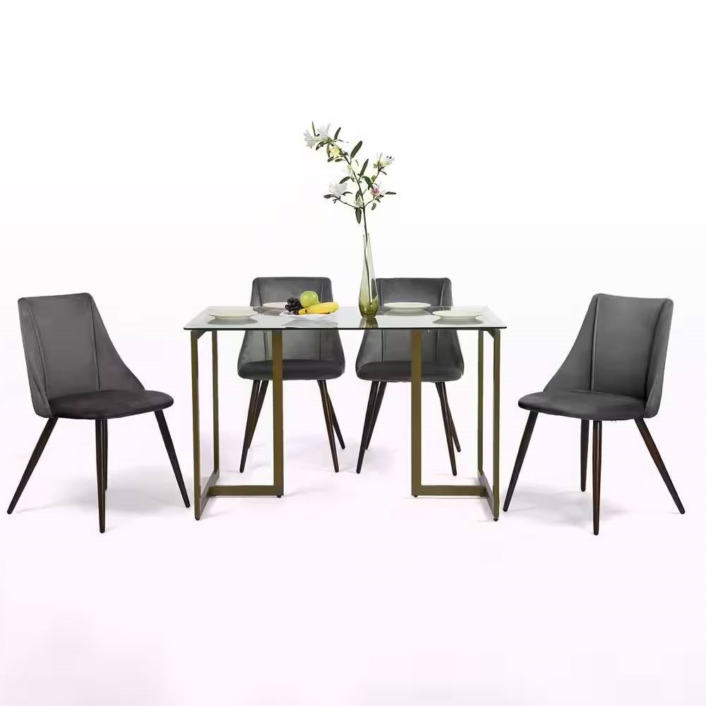 • Modern 47-inch x 31-inch Tempered Glass Top Dining Table with Gold Metal Frame