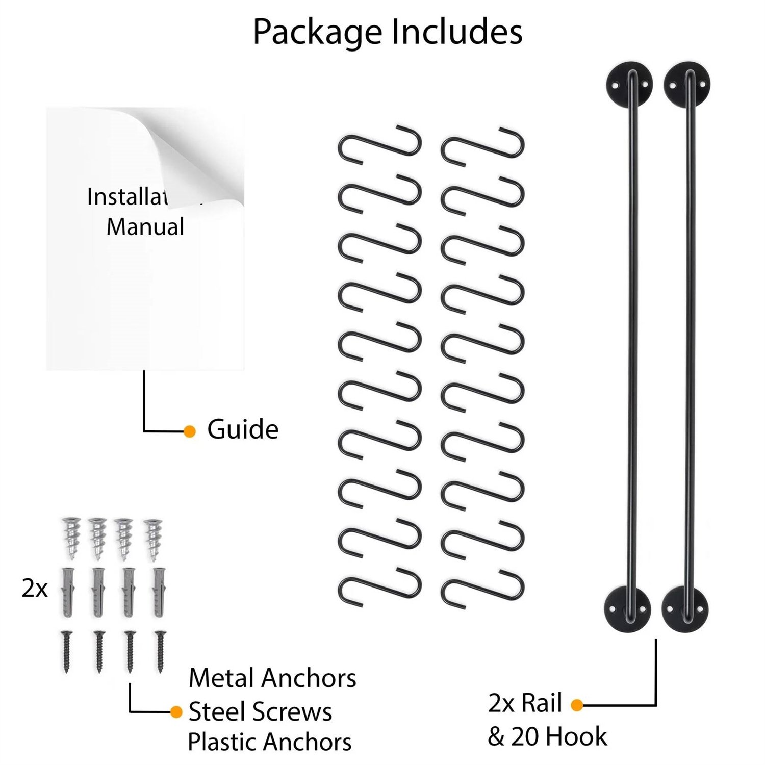 Set of 2 - Black Metal Wall Mounted Pot Rack with 20 Hanging Hooks Set of 2 - Black Metal Wall Mounted Pot Rack with 20 Hanging Hooks Set of 2 - Black Metal Wall Mounted Pot Rack with 20 Hanging Hooks Set of 2 - Black Metal Wall Mounted Pot Rack with 20 Hanging Hooks Set of 2 - Black Metal Wall Mounted Pot Rack with 20 Hanging Hooks